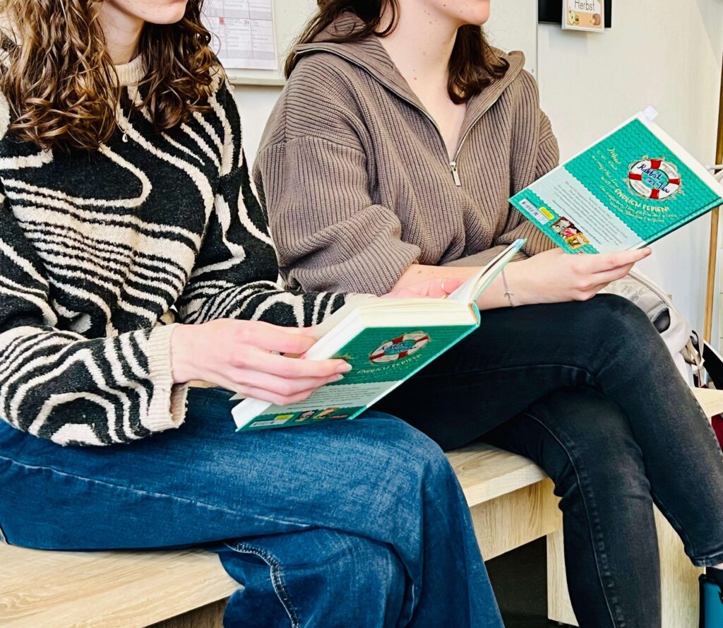 Am Freitag, den 21.11.2025, drehte sich bei den 3. Klassen der Lessing Grundschule alles um spannende Geschichten und lebendige Abenteuer. Die Drittklässler bekamen besonderen Besuch vom Reuchlin-Gymnasium: Zwei Schülerinnen der Q13 reisten mit „Die Schule der magischen Tiere – Endlich Ferien“ (Bd. 1) an und hatten gleich ein ganzes Rudel unsichtbarer tierischer Begleiter im Gepäck. Mit Ida und Rabbat ging es in den Urlaub nach Italien – doch dann kam so einiges anders als erwartet. Ein übereifriger Junior-Detektiv, geheimnisvolle Hotel-Diebstähle und ein seltsames Gemüse-Rätsel hielten Ida und ihren Fuchs auf Trab. Das zweite Team - bestehend aus zwei Schülerinnen der 10. Klasse - entführte die Kinder mit „Der fabelhafte Regenschirm“ an einen fremden und sonderbaren Ort! Hier wurden Schweine und Kühe an der Leine spazieren geführt, statt Eis gab es Gemüse in der Waffel und die Erwachsenen spielten wie Kinder! Was war hier nur passiert? Die wundersame Reise geschah natürlich stilecht mit Requisiten, die fast selbst abheben wollten.