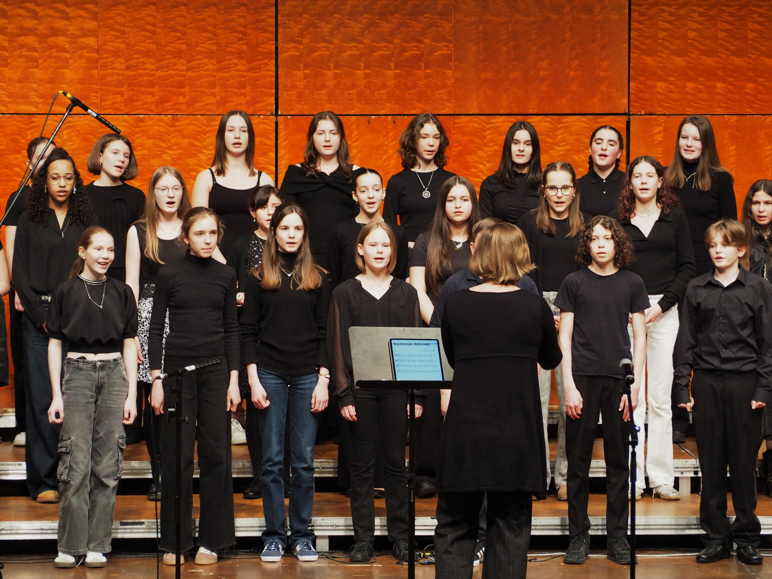 Am 4. März konnte die Reuchlin-Gemeinschaft das diesjährige Schulkonzert im vollbesetzten Stadttheater genießen. Das abwechslungsreiche Programm sorgte für einen sehr kurzweiligen Abend: von der Götterolympiade der jüngsten Chorklassen bis zu Viva La Vida der größeren Chöre, vom schwungvollen ungarischen Tanz des Orchesters über Amy Winehouse bis hin zu Pick up the Pieces der Jazzbands, vom solistischen Klavierbeitrag bis zur geisterhaften Performance der Theaterkinder: Für jeden Geschmack war etwas dabei und sorgte für begeisterten Applaus und beste Stimmung. Beim großen Finale kamen nochmal alle Mitwirkenden auf die Bühne und feierten einen großartigen musikalischen Abend. Wir freuen uns schon wieder aufs nächste Jahr!