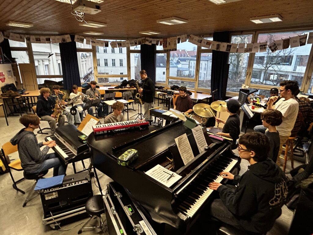 Ein weiteres X-Mas-Present gab es am nächsten Tag (11.12.) für einige Schüler:innen der Klasse 10ab (Jazz im Lehrplan!), die in der Harderbastei dem Programm „ Weiners’s Heihnacht 2025 – The Return Of The Highnite Brothers“ lauschten, swingend, groovend oder mit jazzig funkelnder Glasur, dargeboten vom Jazzquartett des Vortags. Ein kostenloses Geschenk (Eintritt frei!) der Stadt Ingolstadt für ihre Bürger:innen mit Jazzinteresse.